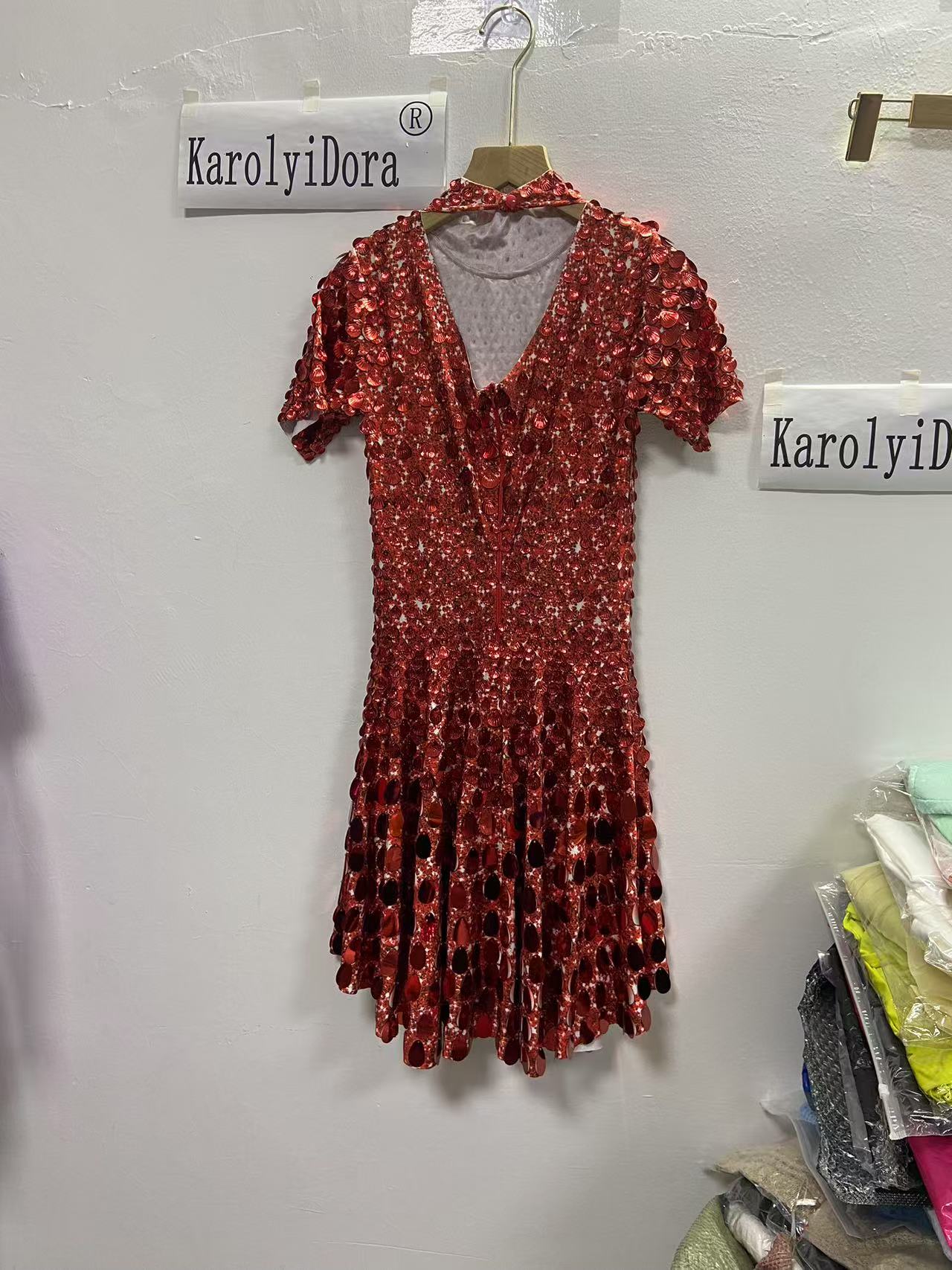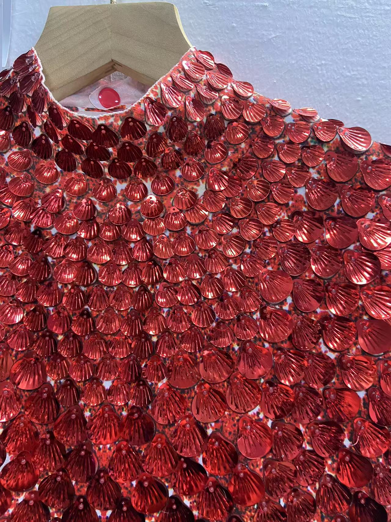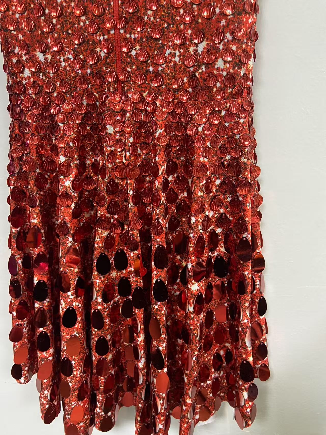 Extended 7cm sexy red colored shell sequin mini dress, nightclub dance high-quality performance costume jumpsuit, birthday dress