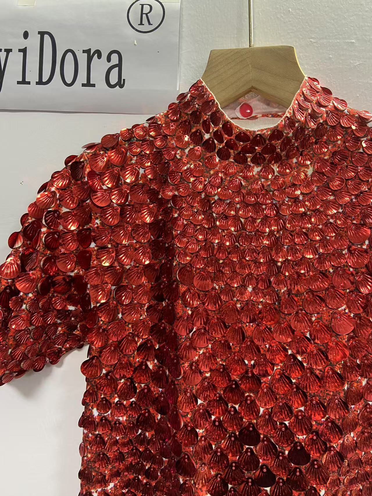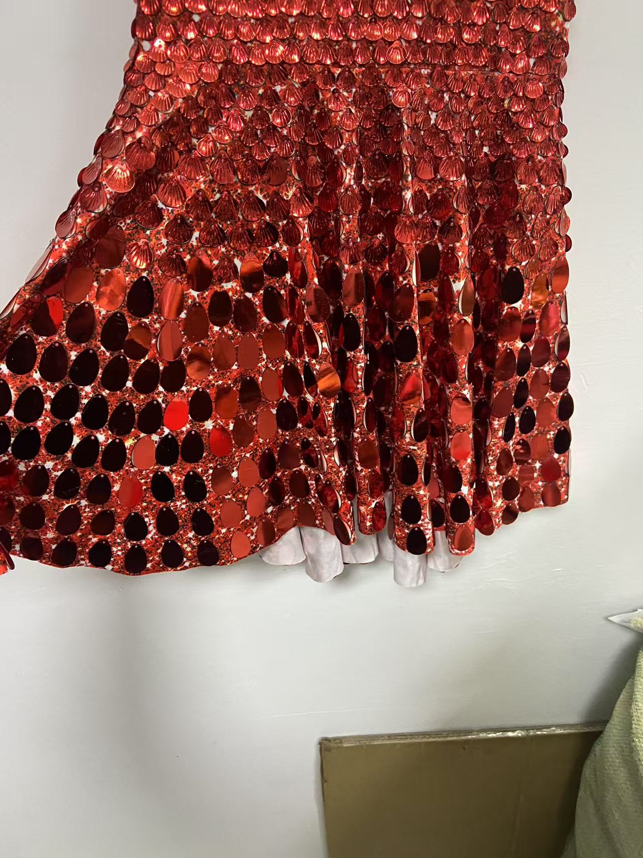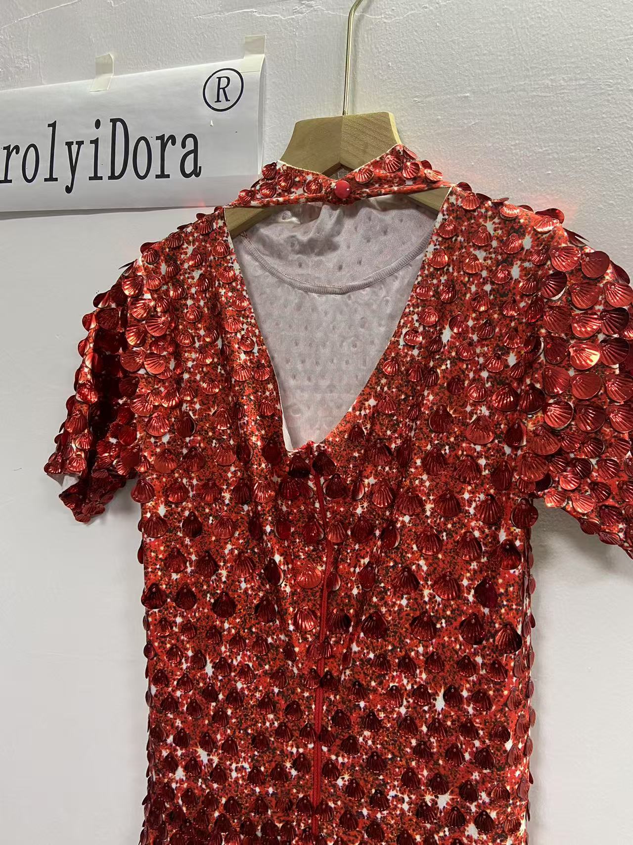 Extended 7cm sexy red colored shell sequin mini dress, nightclub dance high-quality performance costume jumpsuit, birthday dress