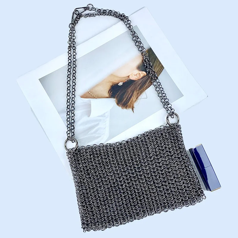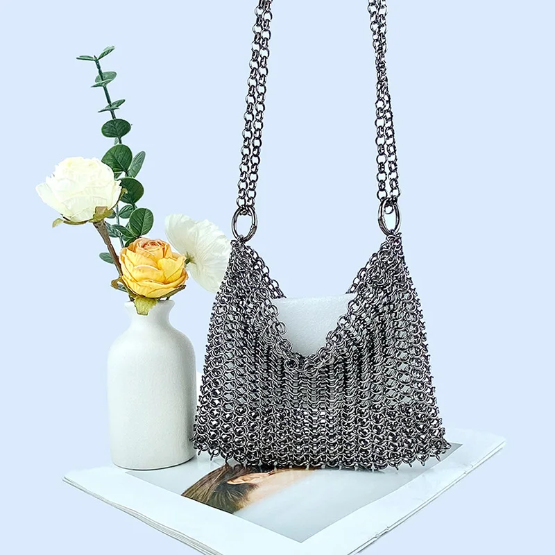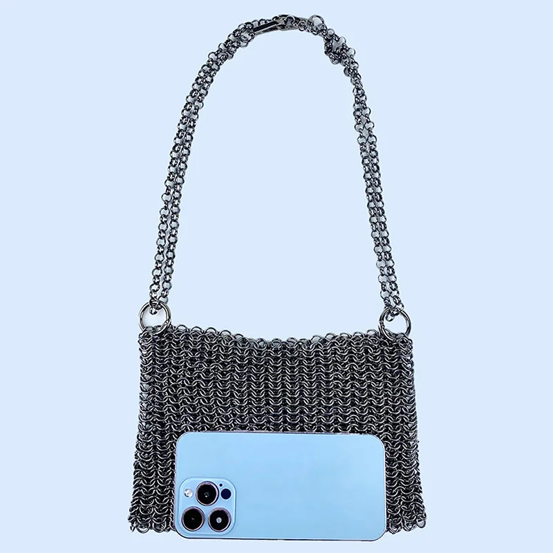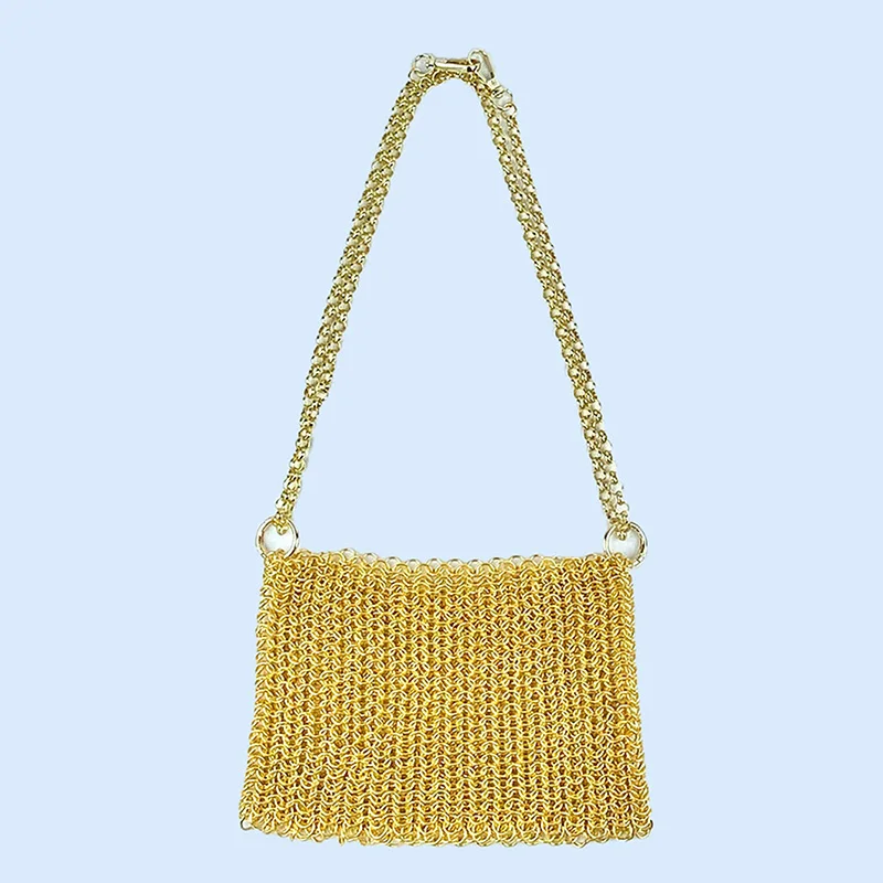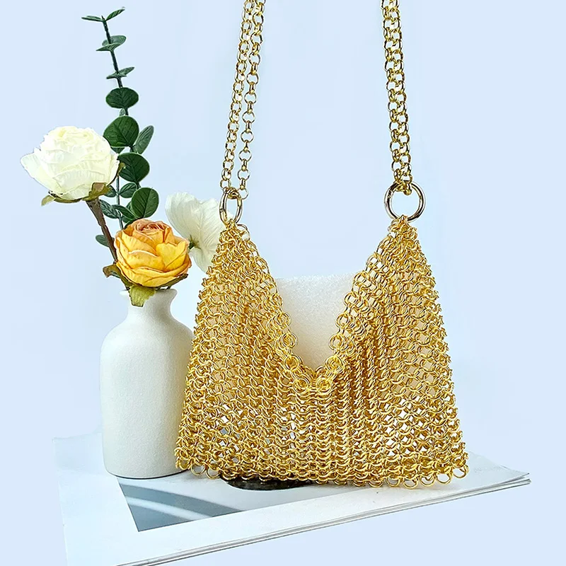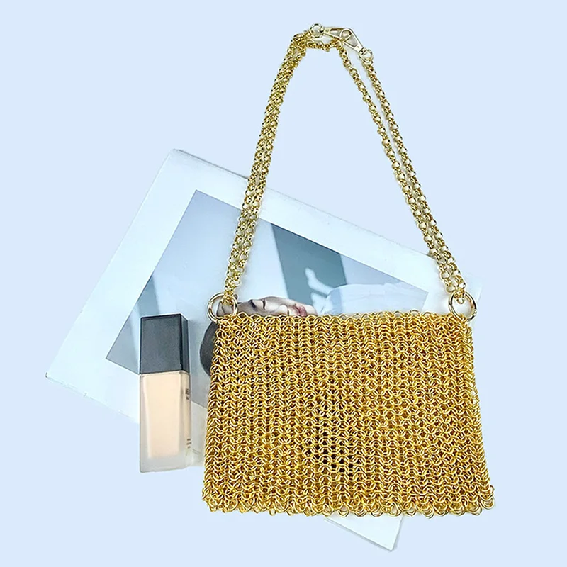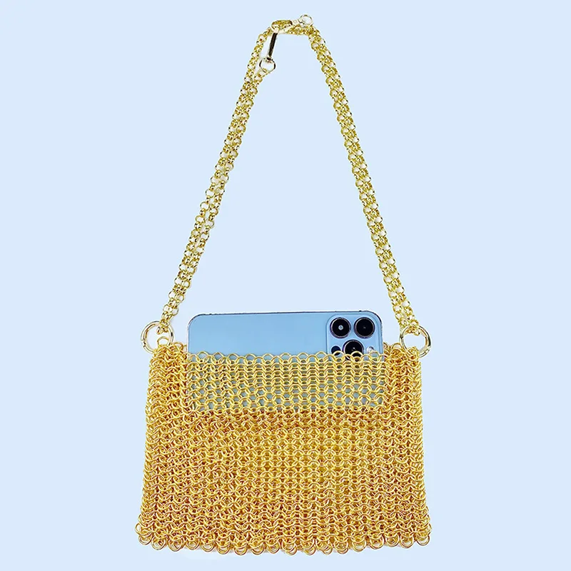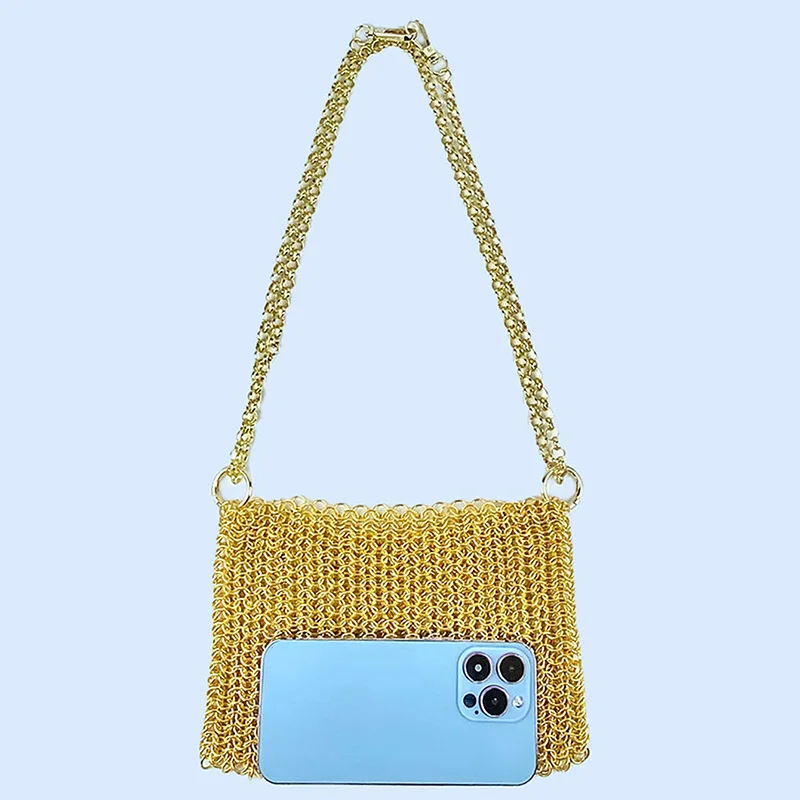gold New Product: Metal Shiny Handwoven Lock, Bright Bead, Fish Scale Hollow out Phone Chain, Underarm Crossbody Bag