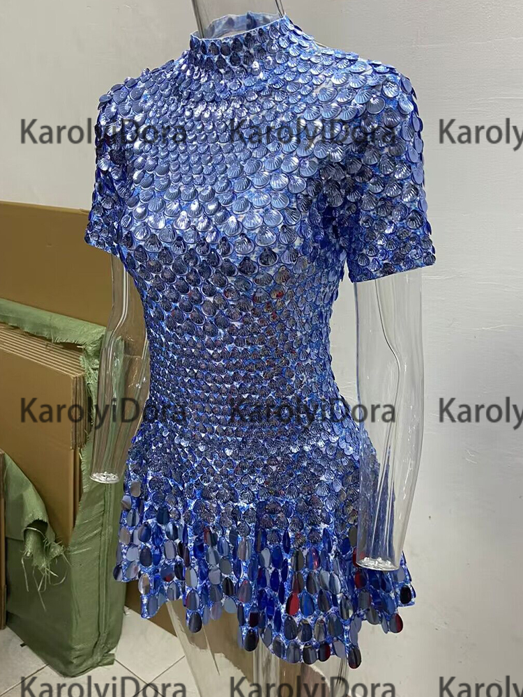 Featuring a stunning shell sequin design, this dress adds a touch of glamour to any nightclub performance.