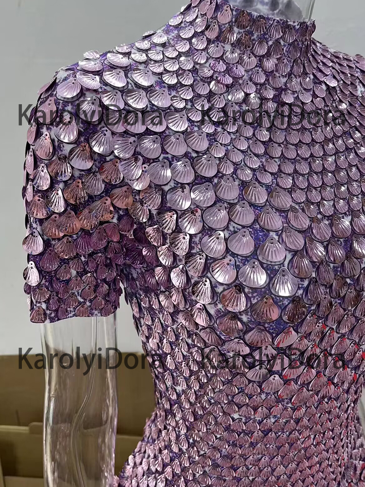 Featuring a stunning shell sequin design, this dress adds a touch of glamour to any nightclub performance.
