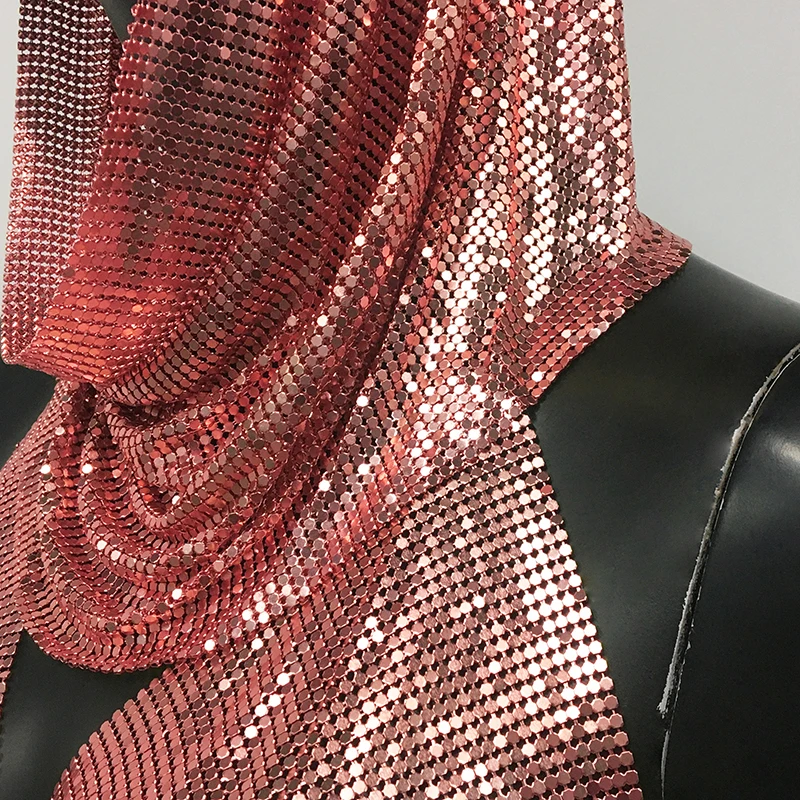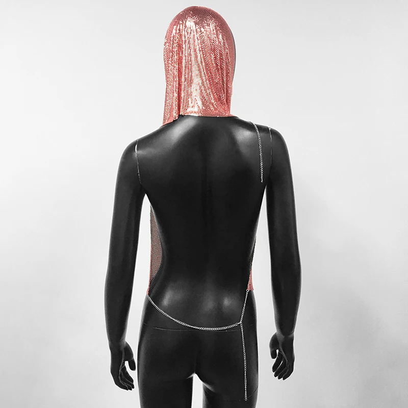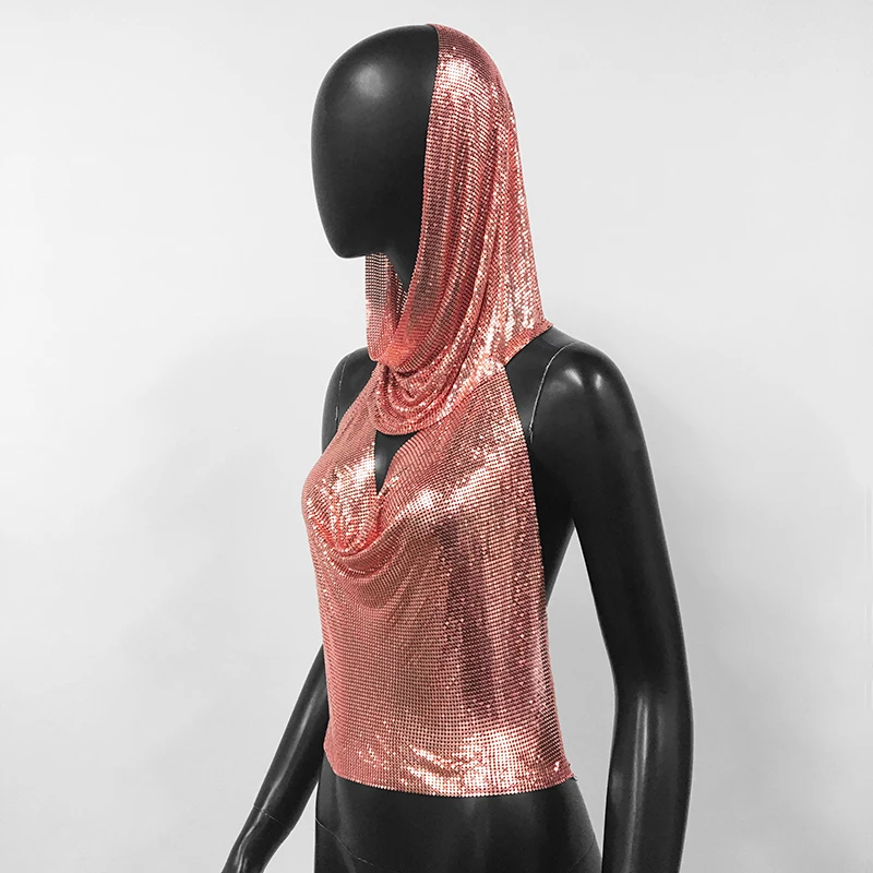 Rose Gold Women Metal Sequins Tank Top With Turban 2 Piece Sexy V Neck Backless Suspender Top Rave Festival Party Nightclub Camisole