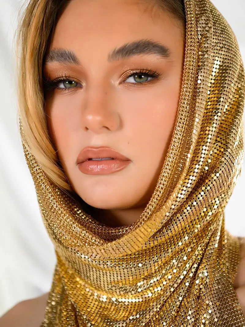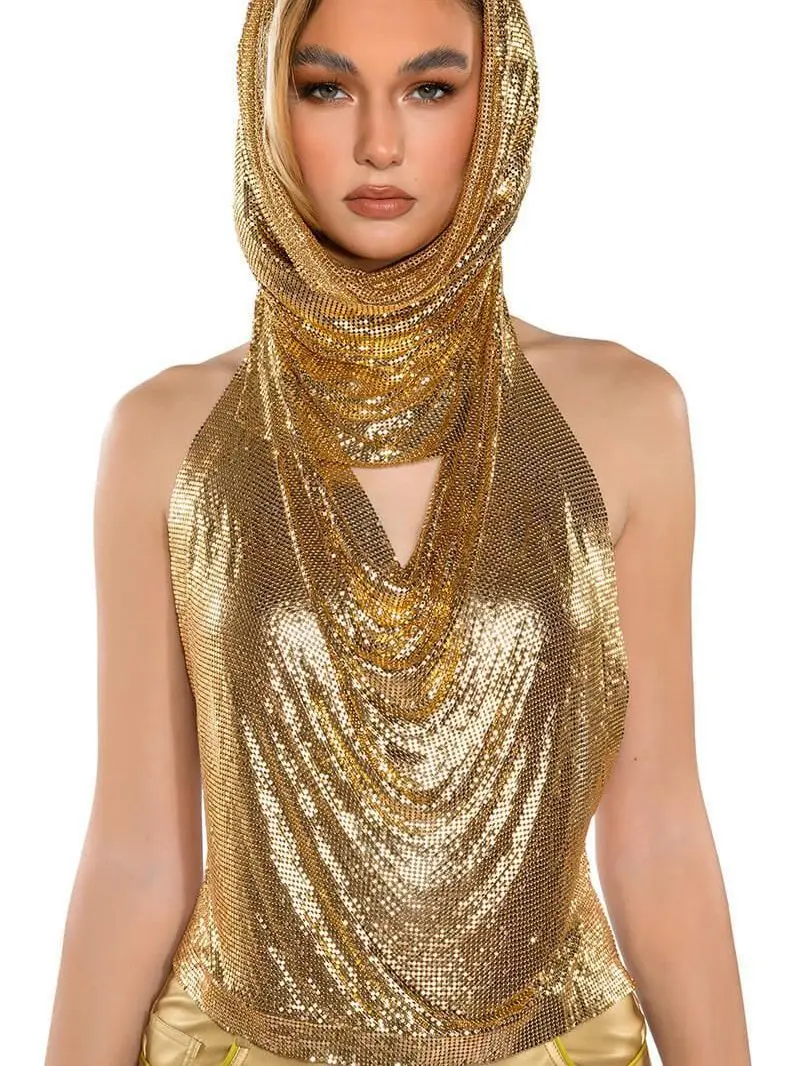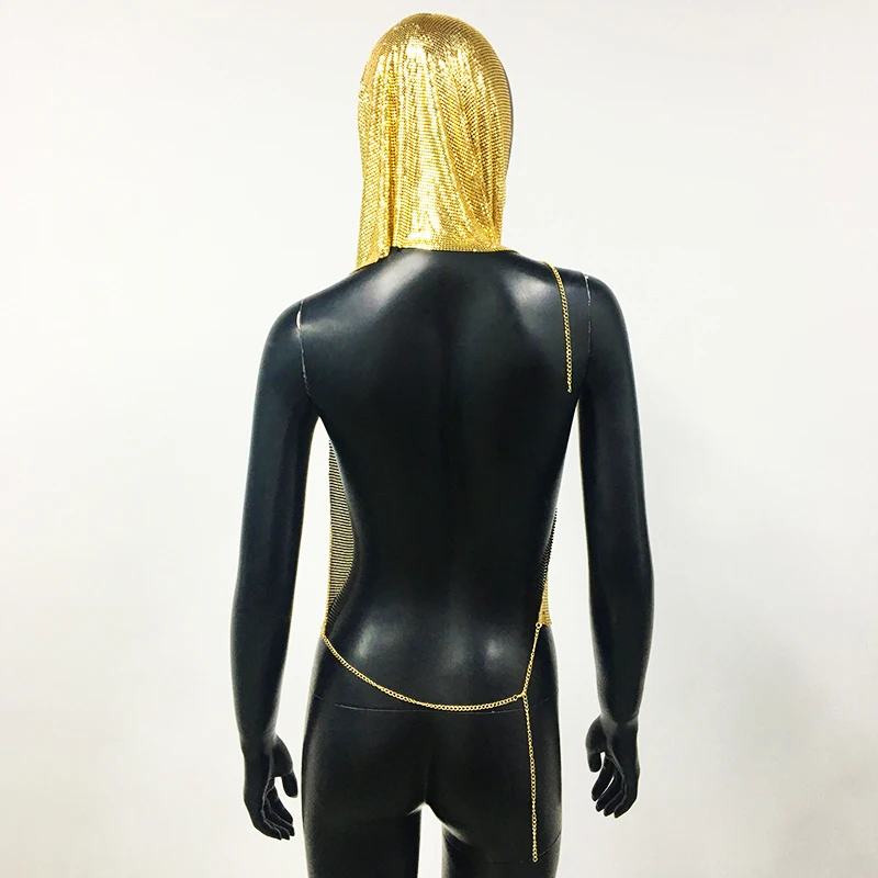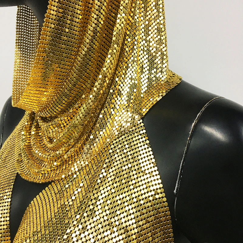 Gold Women Metal Sequins Tank Top With Turban 2 Piece Sexy V Neck Backless Suspender Top Rave Festival Party Nightclub Camisole
