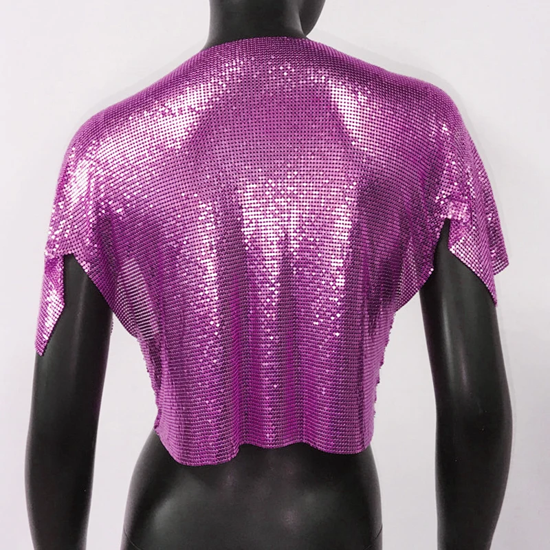 Women Sexy Metal Sequins Tops Summer Glitter Beach Bikini Cardigan Cover Up Night Club Party Rave Festival Loose Coat