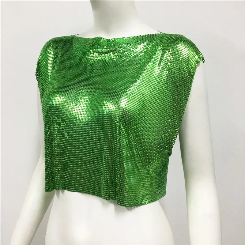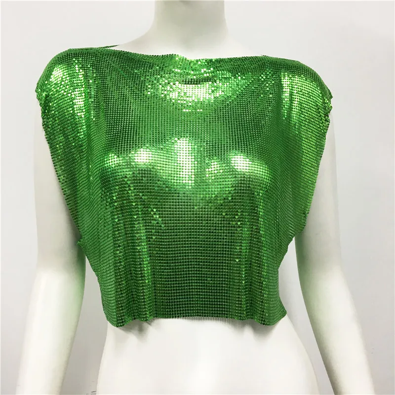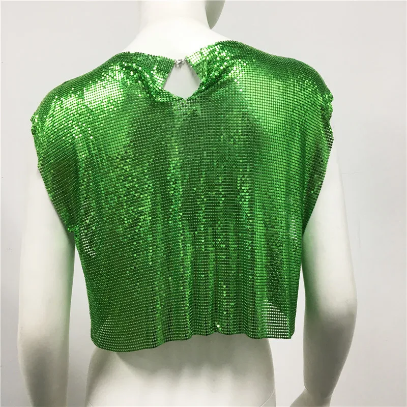 Green Y2k Shiny Metallic Sequins Festival T- Shirts Crop Tops Sexy Women Sleeveless See Through Glitter Sequin Club Party Rave T Shirt