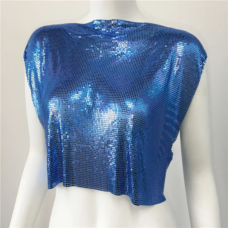Royal Blue Y2k Shiny Metallic Sequins Festival T- Shirts Crop Tops Sexy Women Sleeveless See Through Glitter Sequin Club Party Rave T Shirt