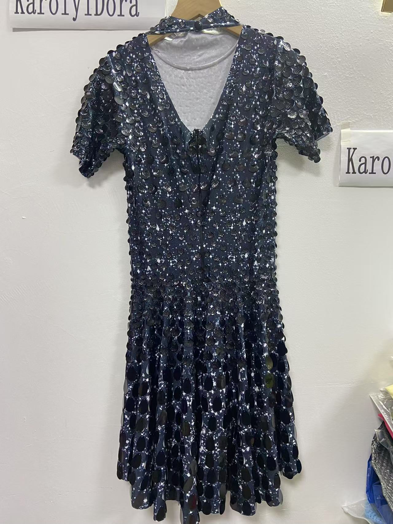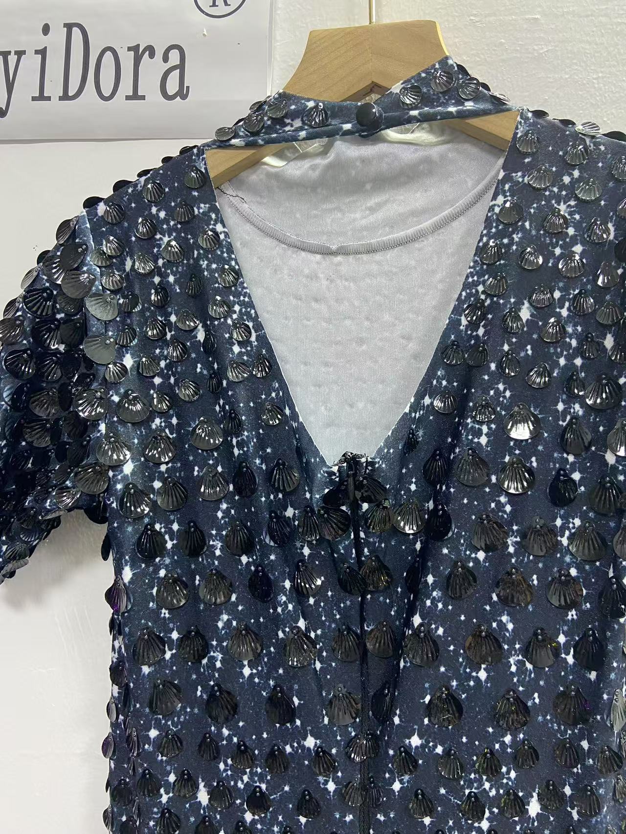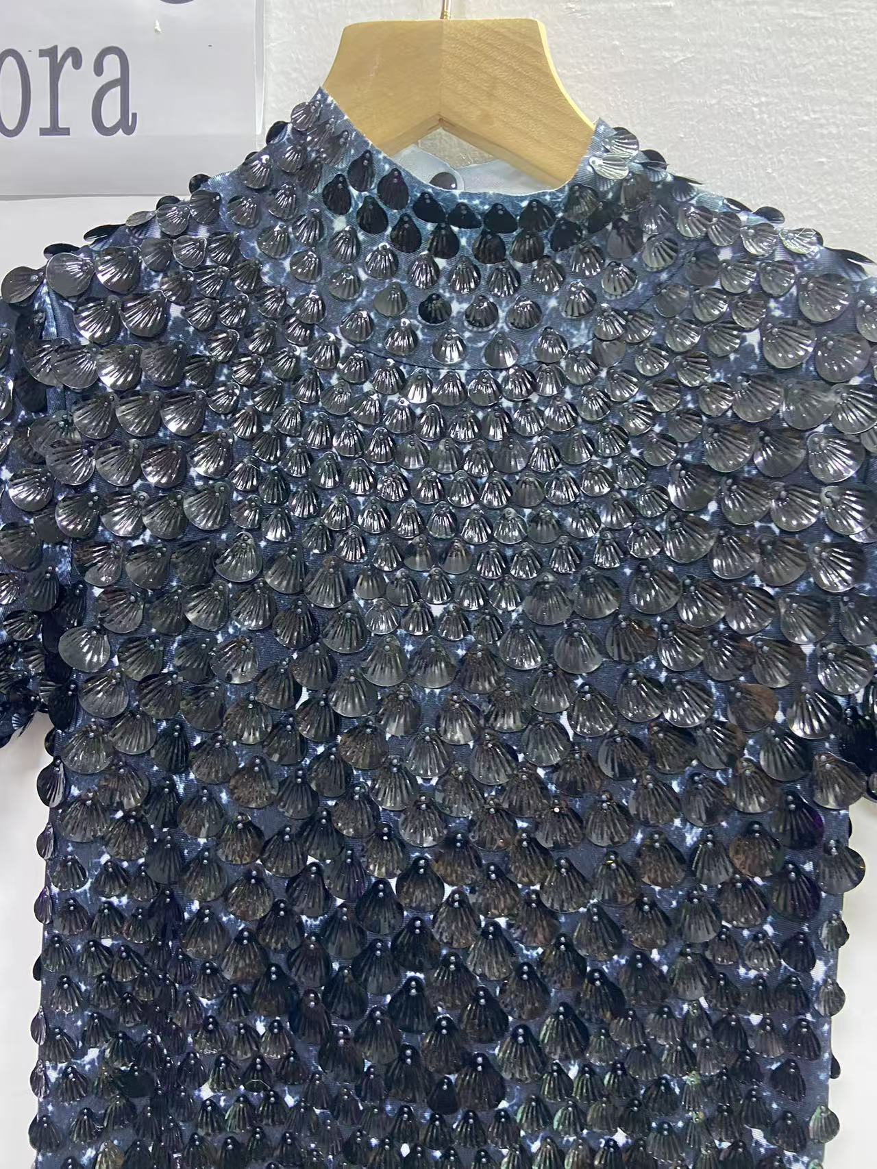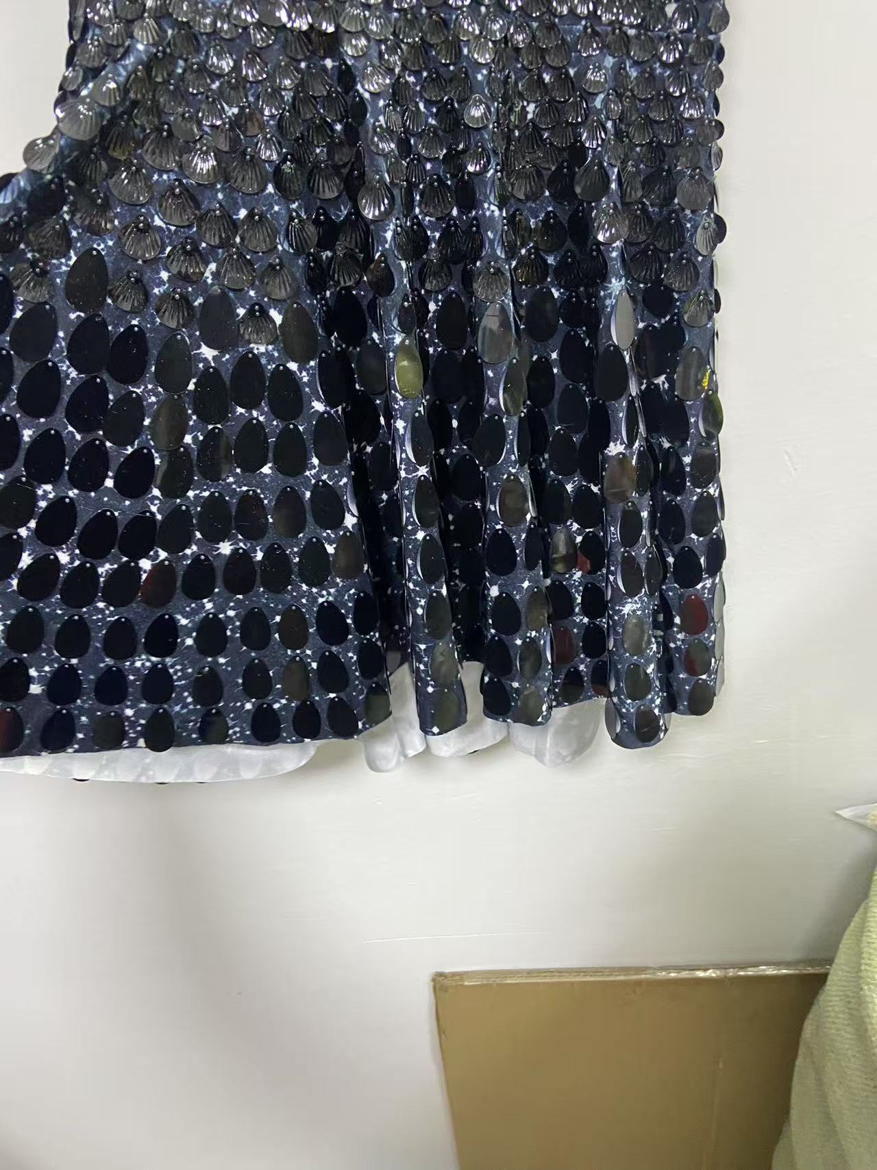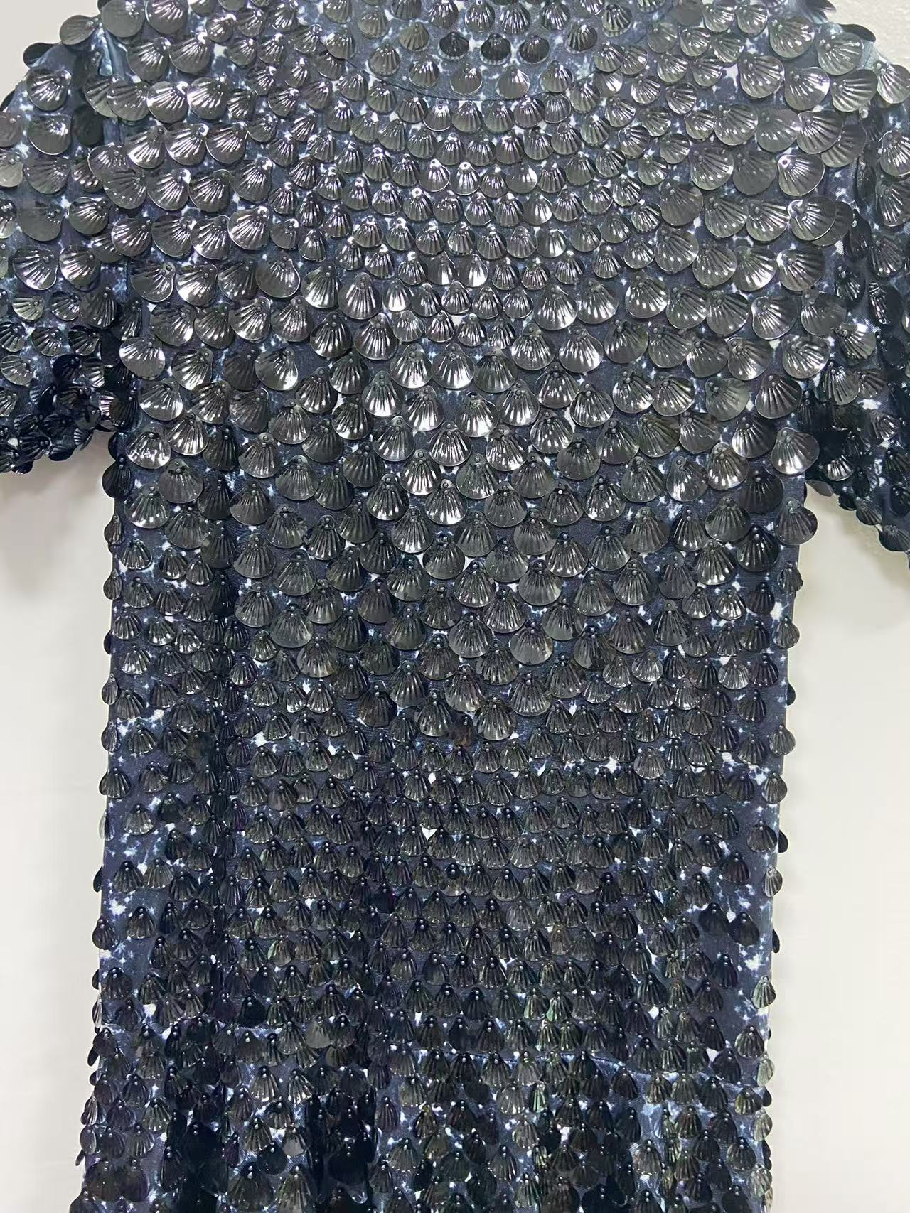 Extended 7cm sexy Black colored shell sequin mini dress, nightclub dance high-quality performance costume jumpsuit, birthday dress