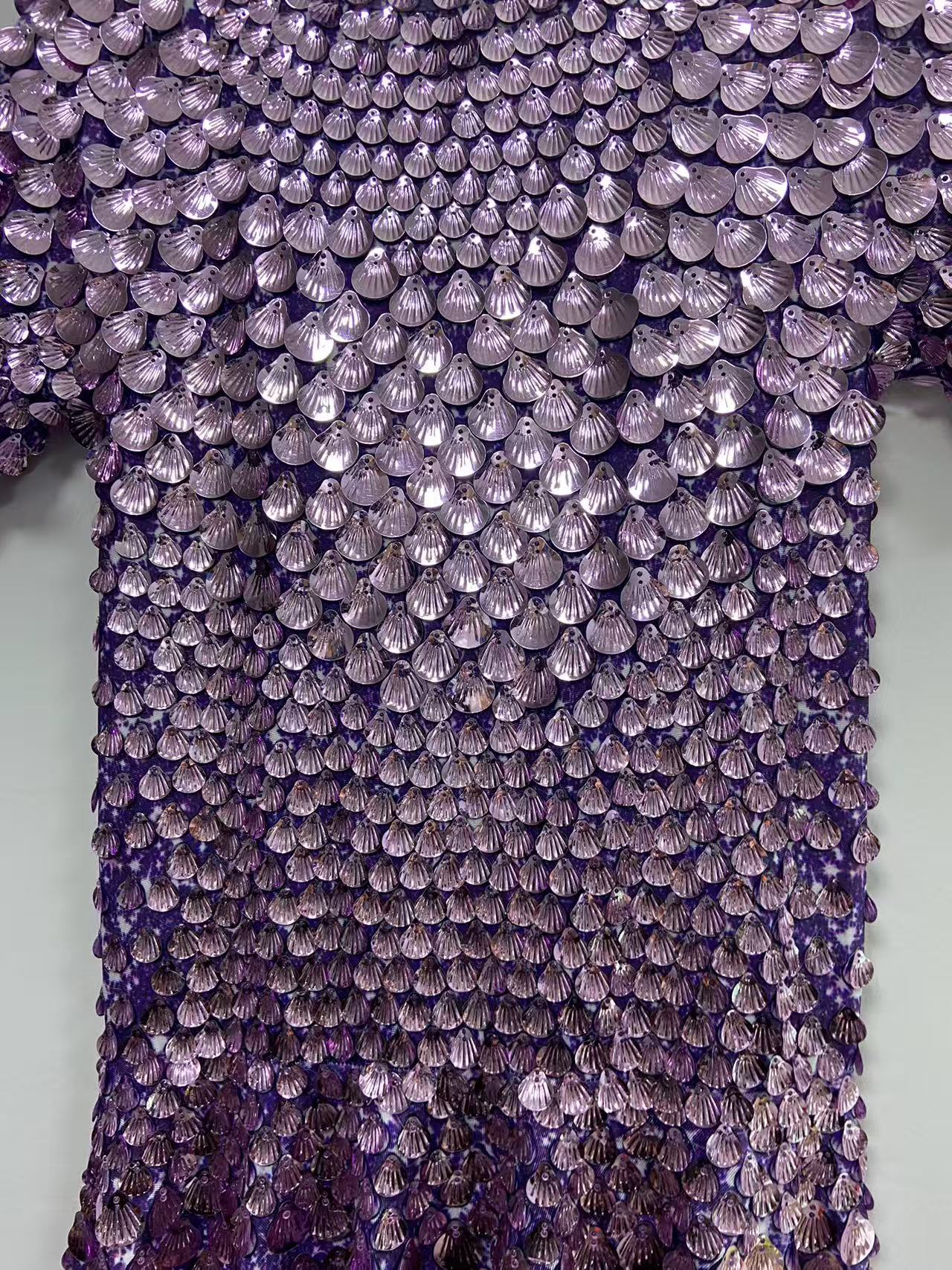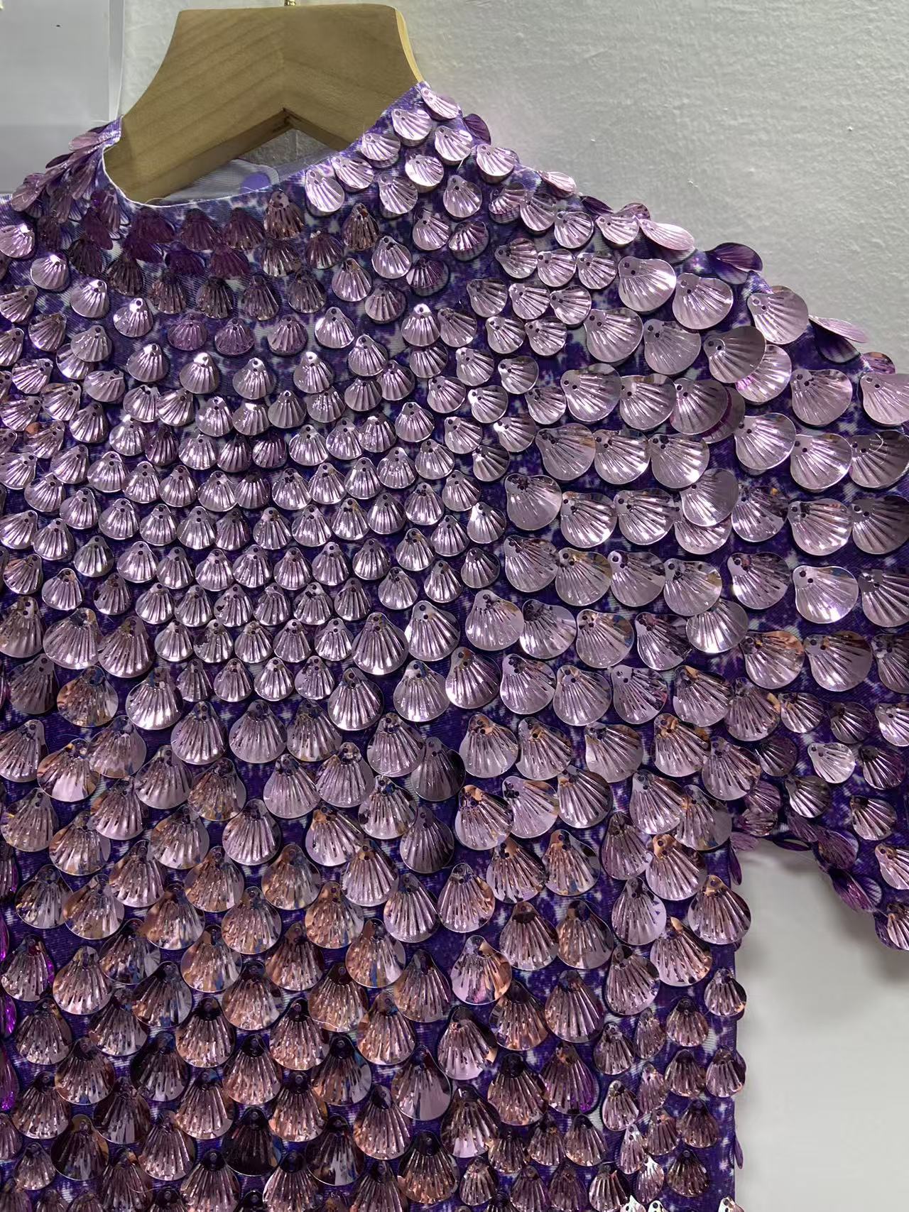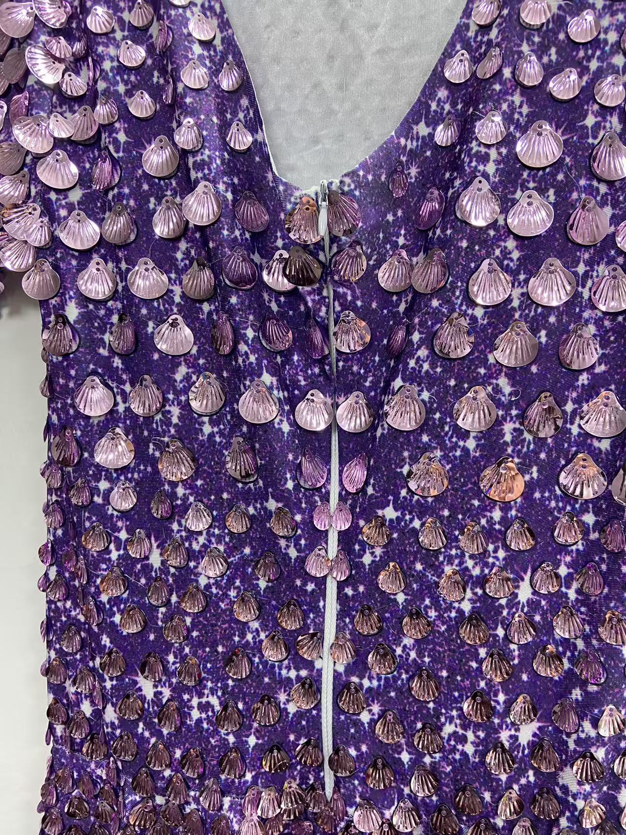 Extended 7cm sexy light purple colored shell sequin mini dress, nightclub dance high-quality performance costume jumpsuit, birthday dress