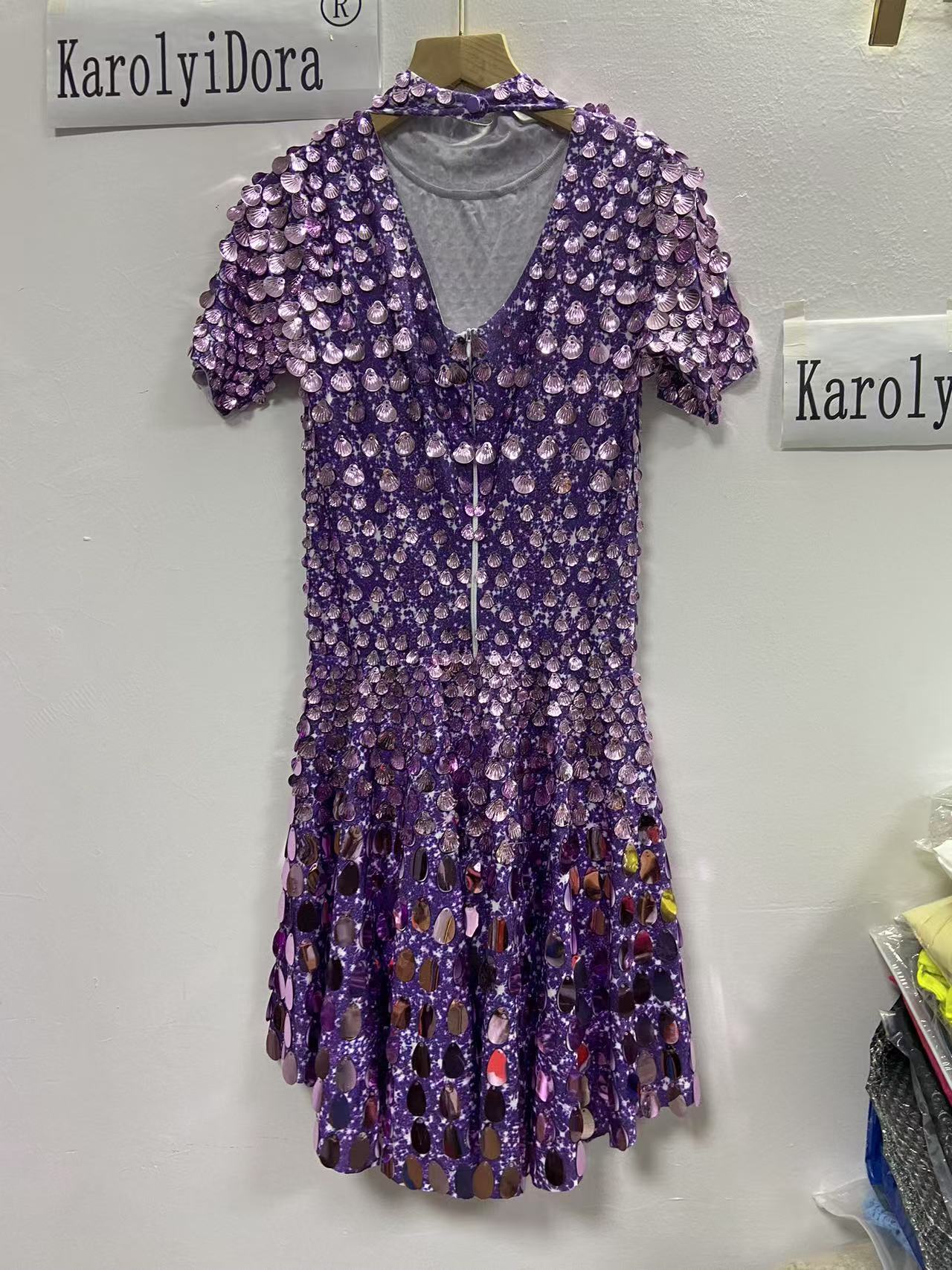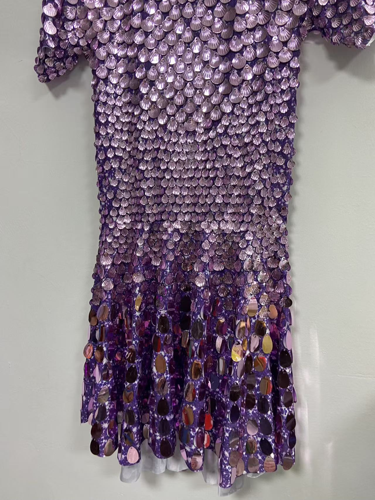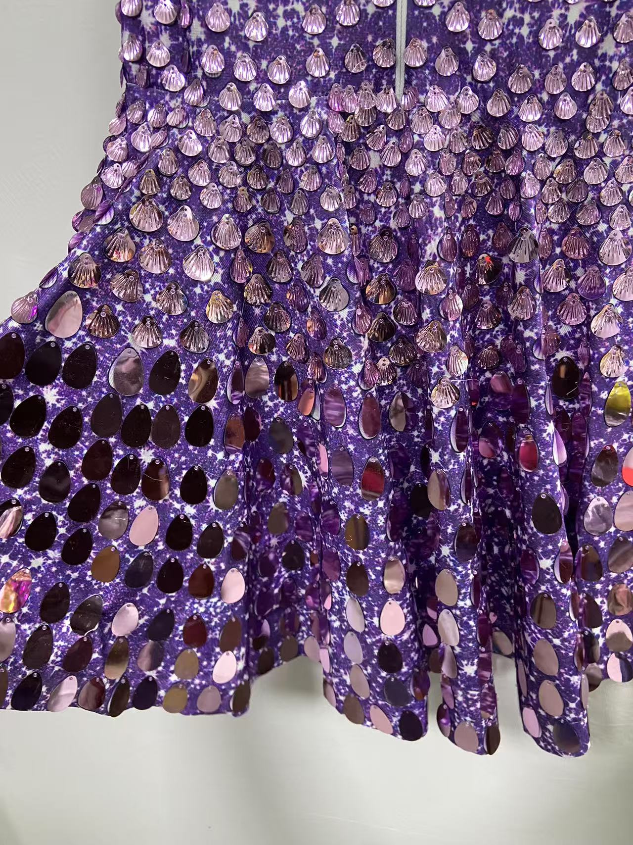 Extended 7cm sexy light purple colored shell sequin mini dress, nightclub dance high-quality performance costume jumpsuit, birthday dress