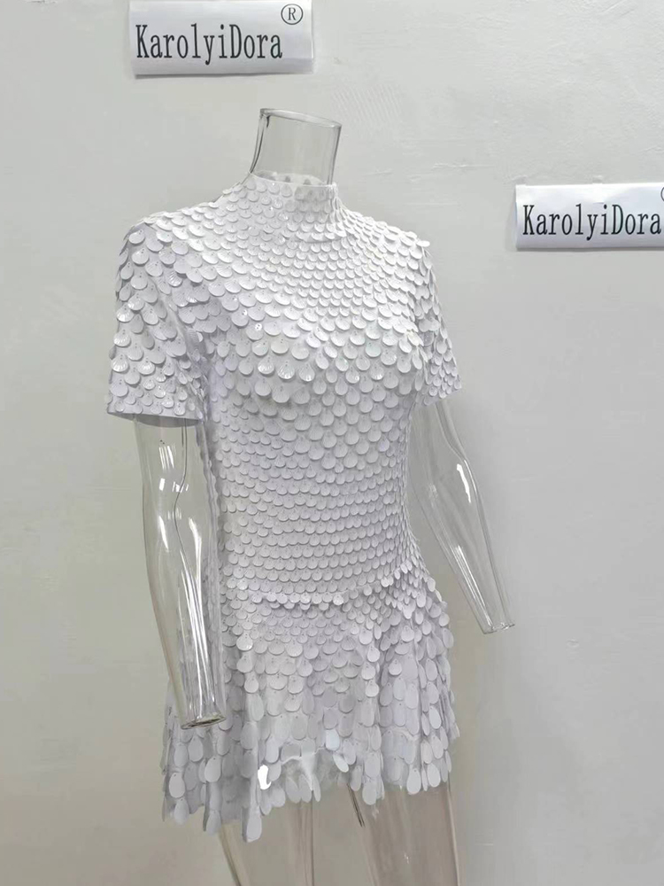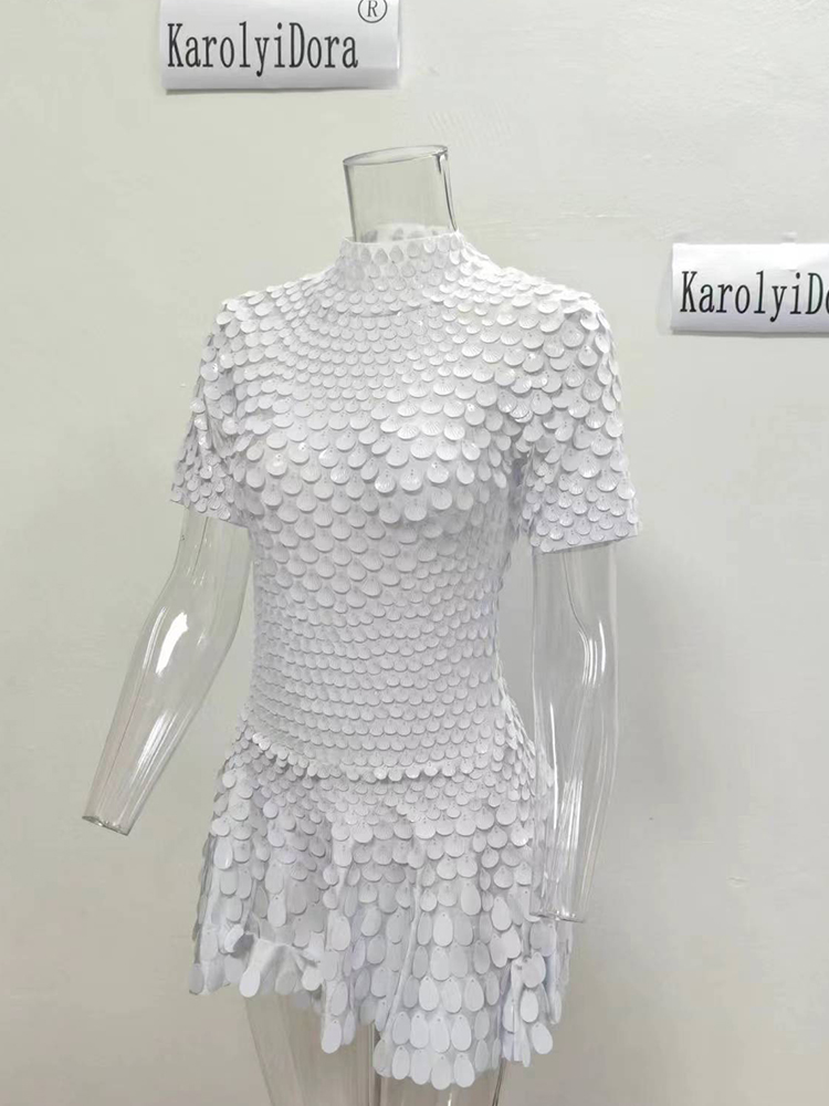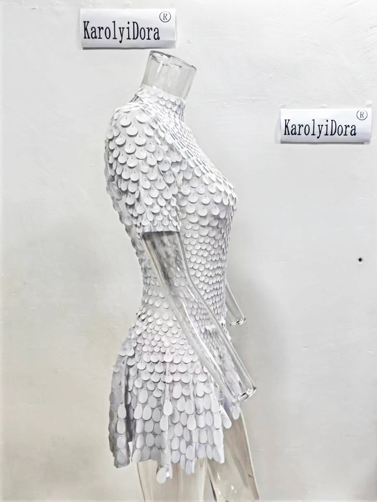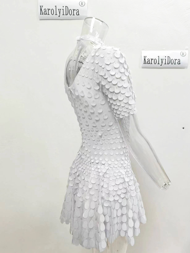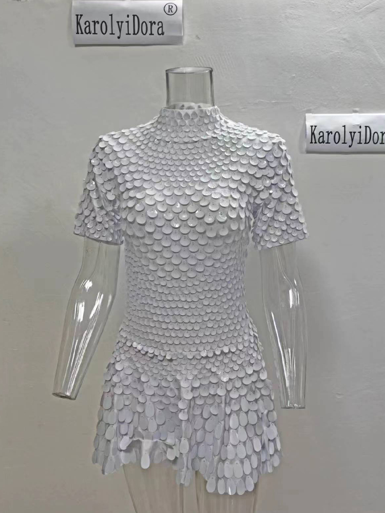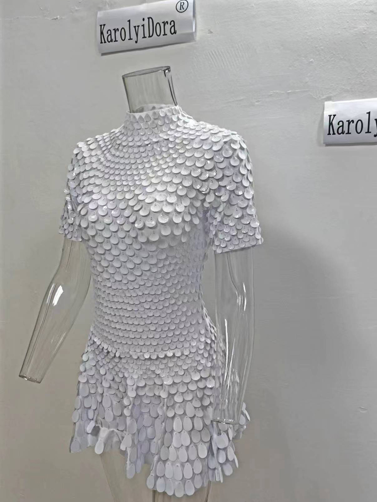 Featuring a stunning shell sequin design, this dress adds a touch of glamour to any nightclub performance.