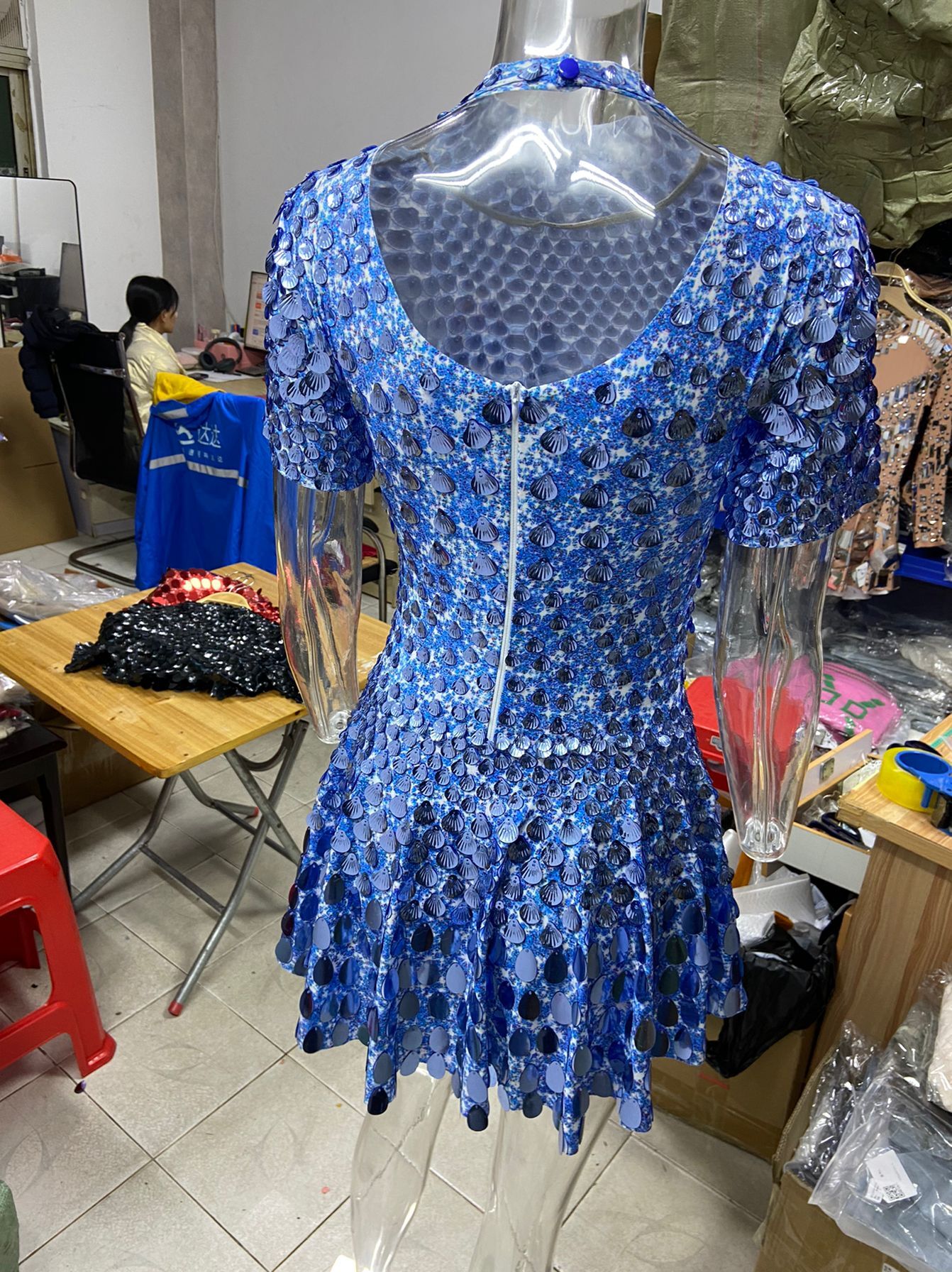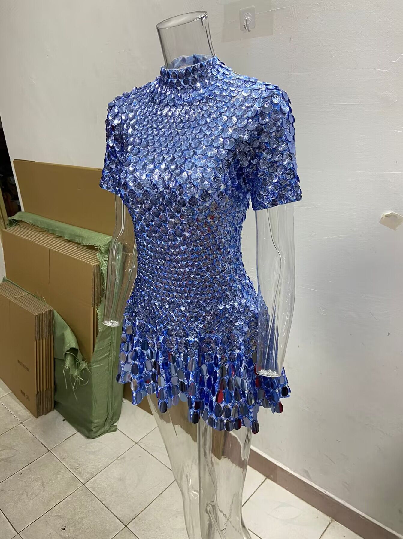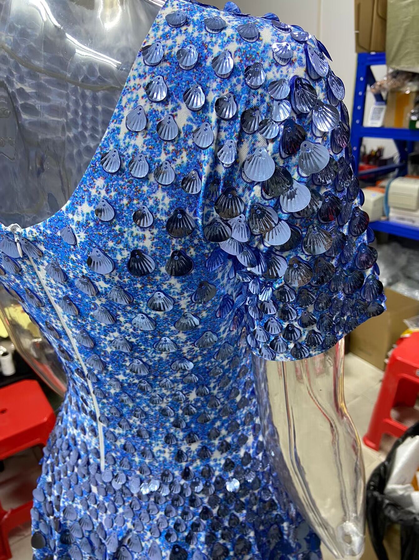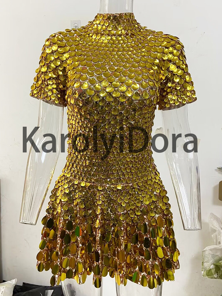 Featuring a stunning shell sequin design, this dress adds a touch of glamour to any nightclub performance.