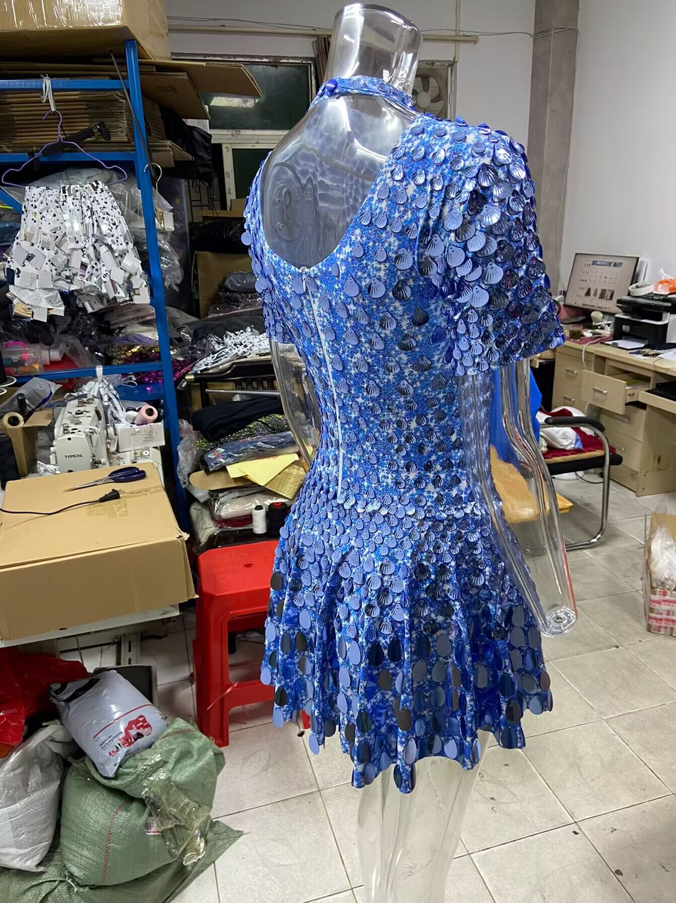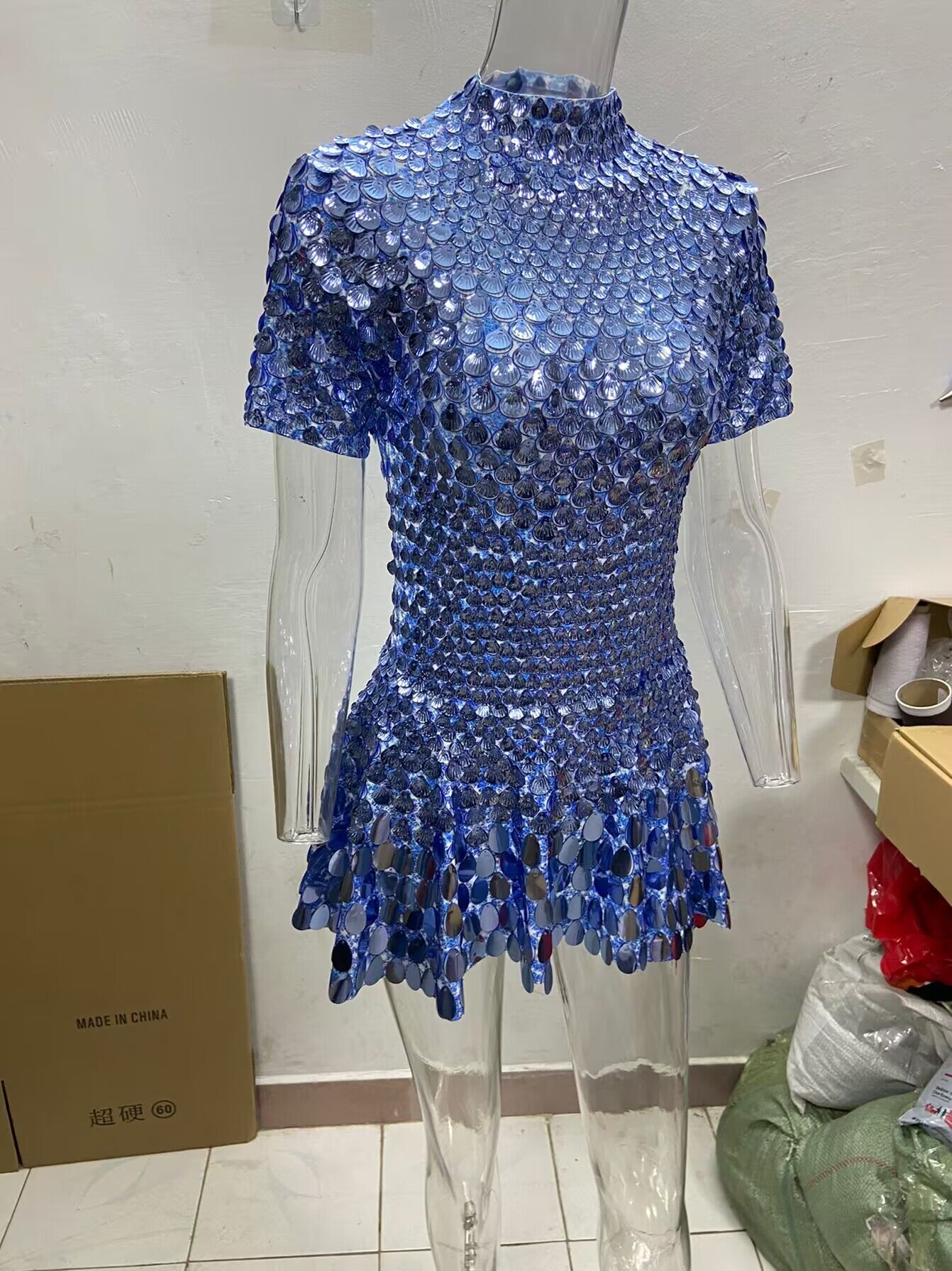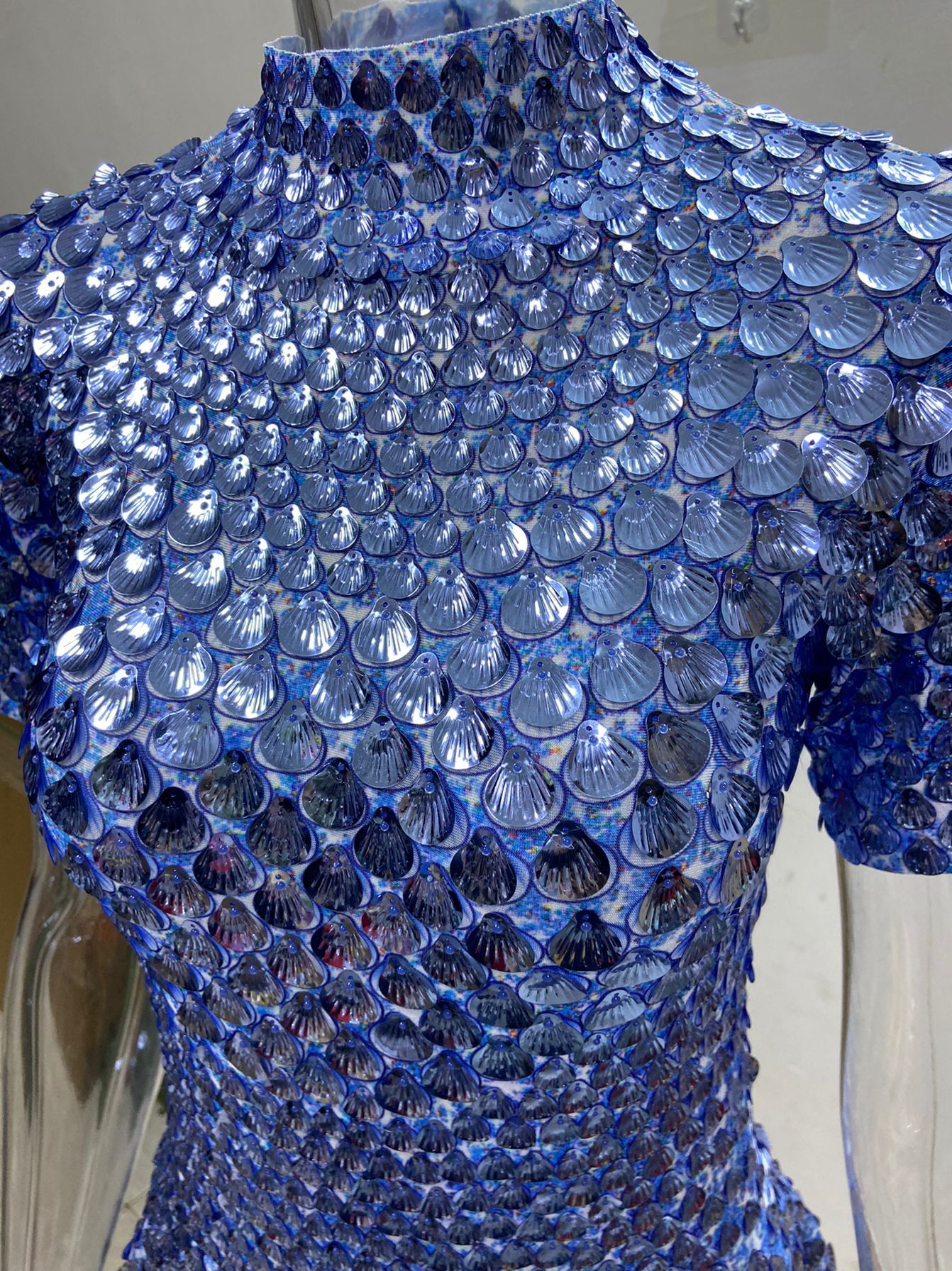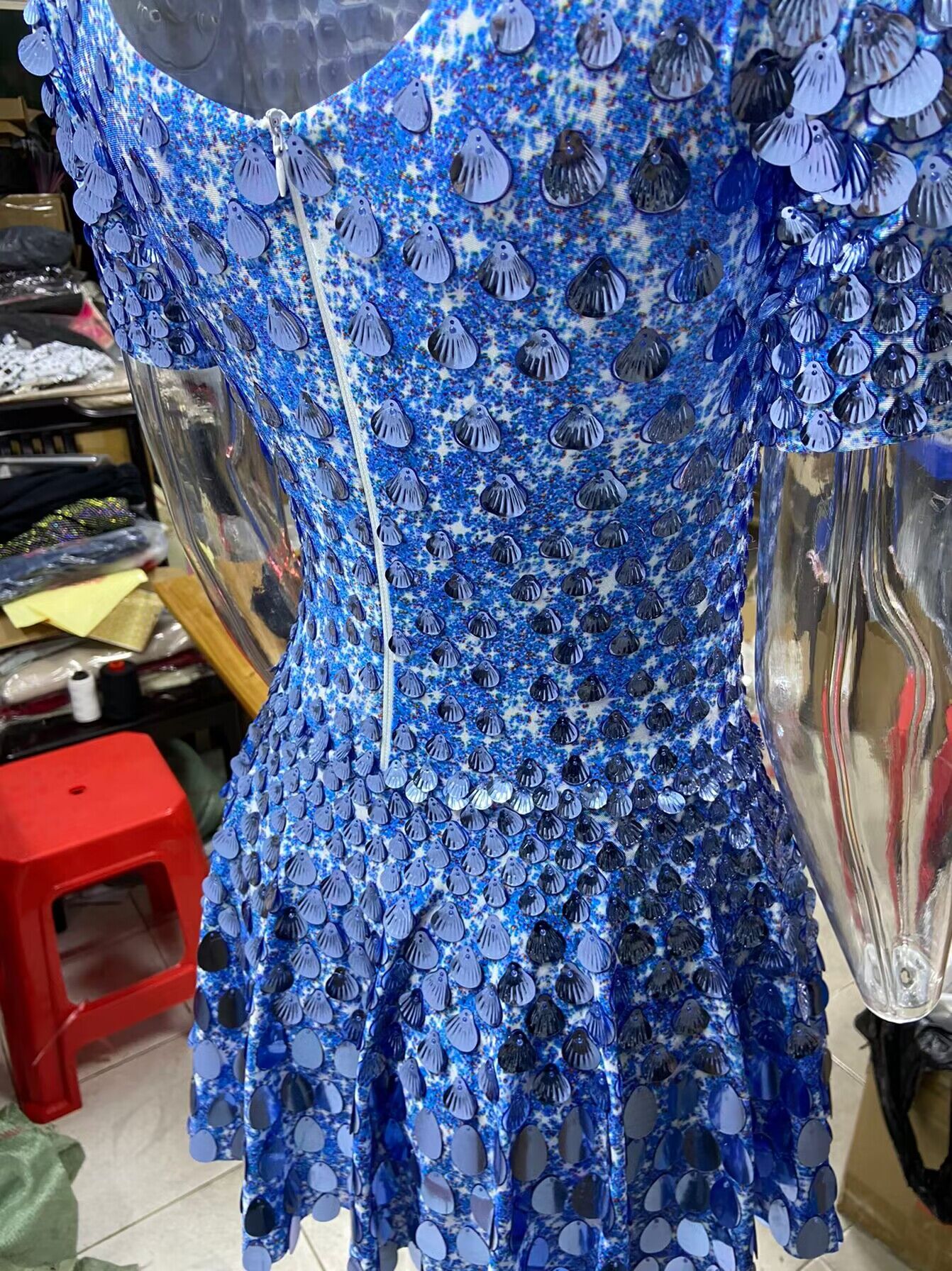 Featuring a stunning shell sequin design, this dress adds a touch of glamour to any nightclub performance.
