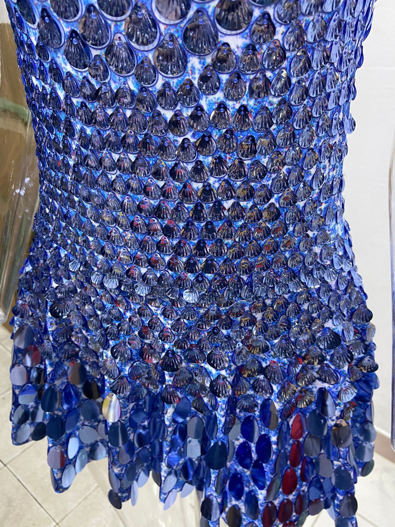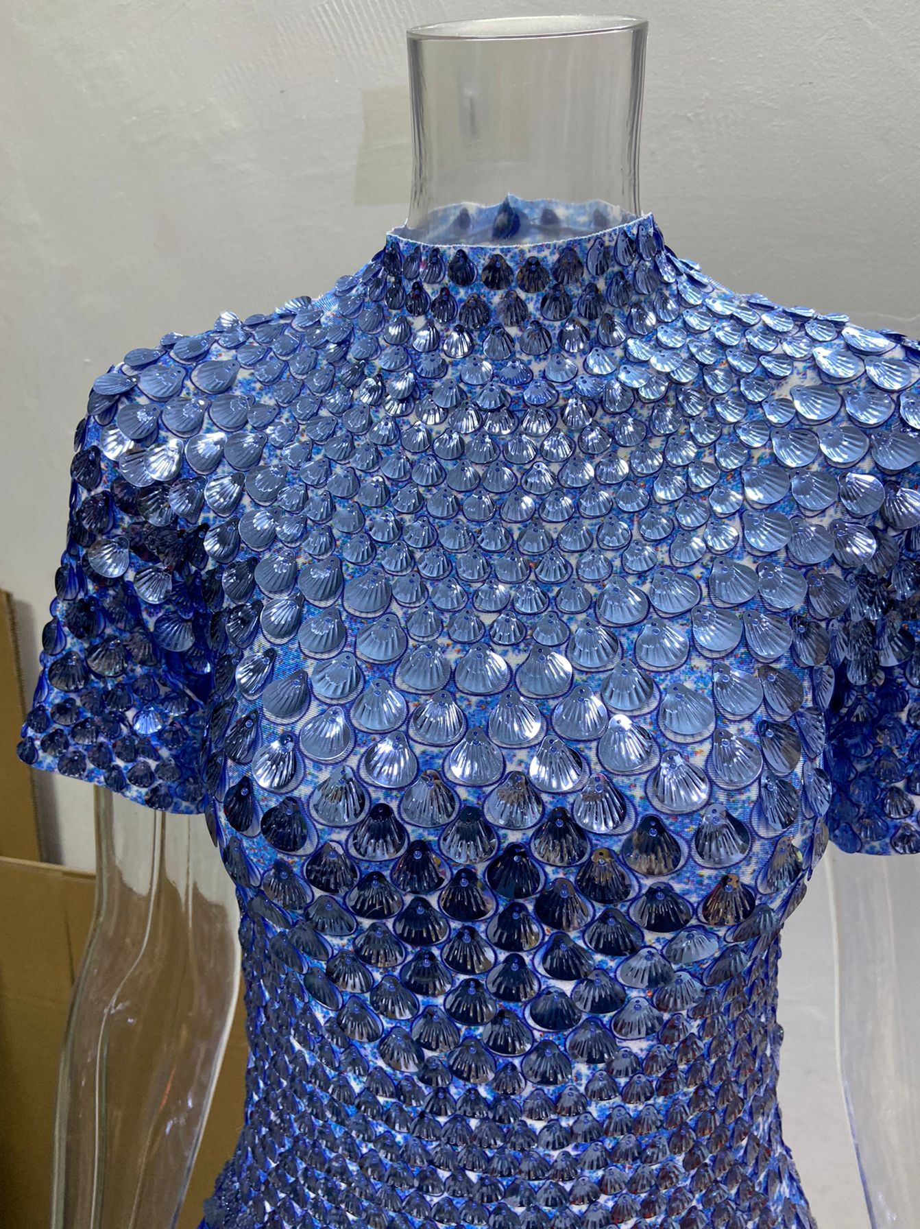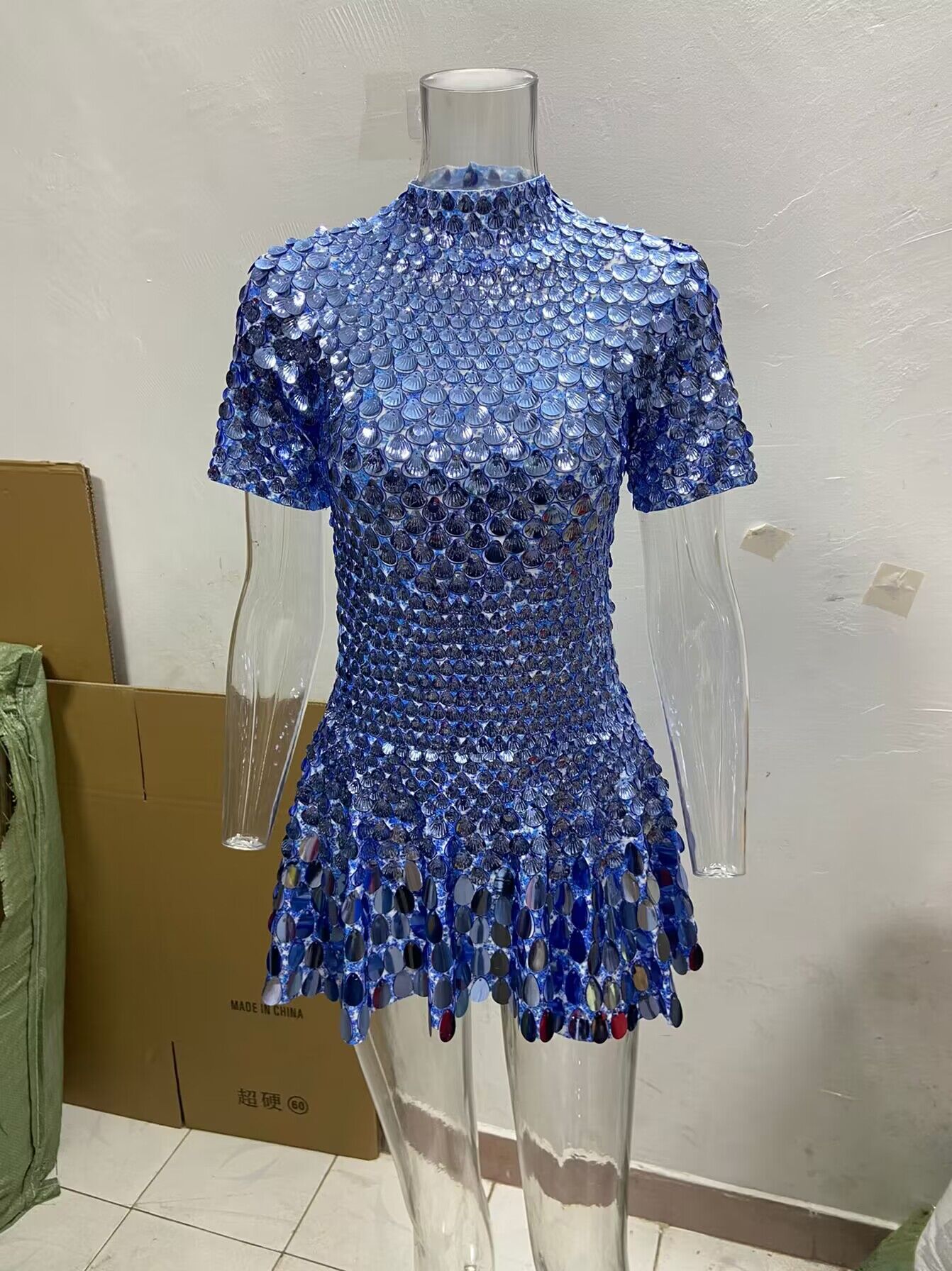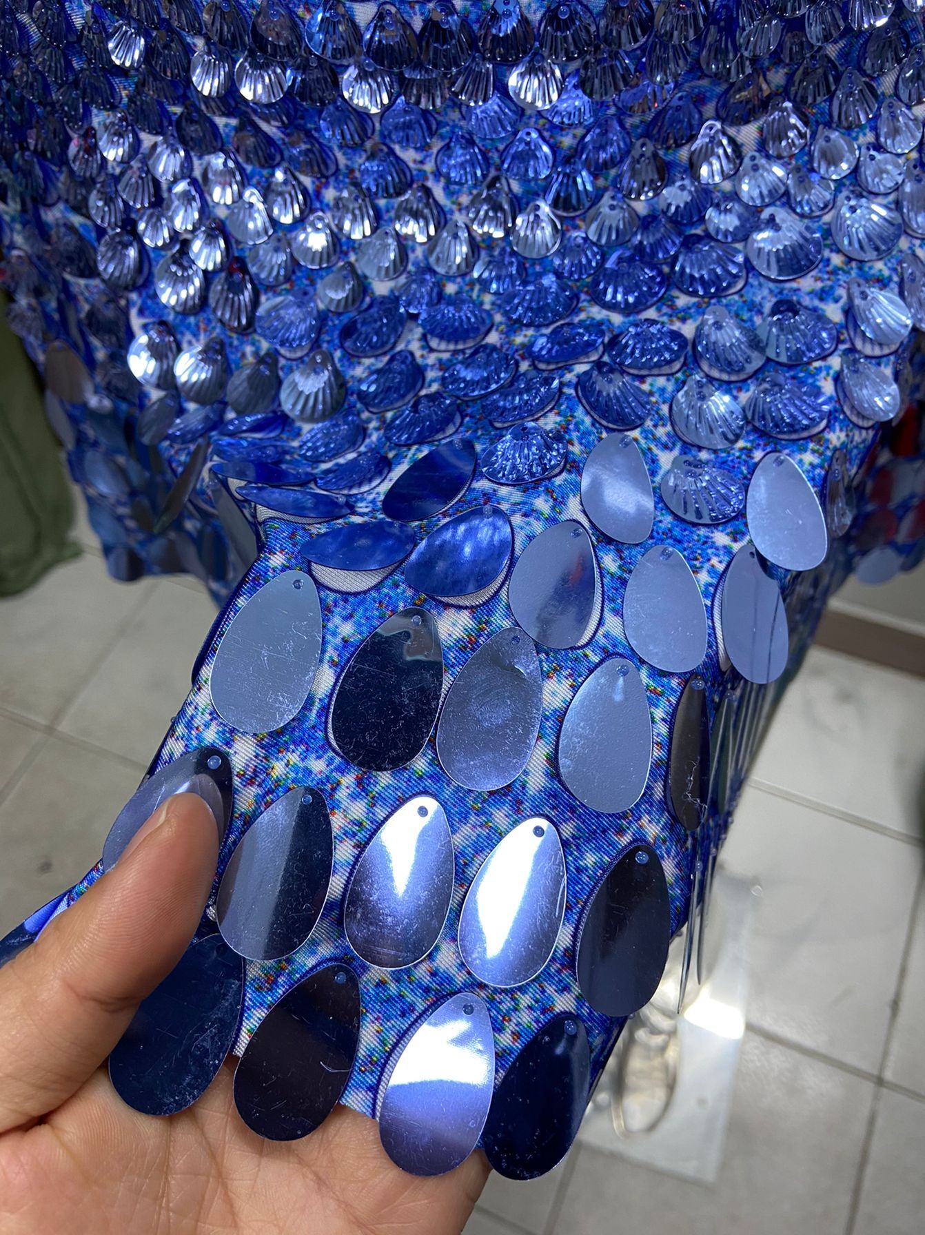 Featuring a stunning shell sequin design, this dress adds a touch of glamour to any nightclub performance.
